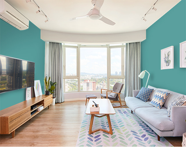 • Hài hòa cùng nội thất trắng, nâu, xám: Sơn tường màu xanh ngọc khi được phối cùng nội thất tông trắng, nâu, xám sẽ tạo nên một tổng thể cân đối, tinh tế và không bao giờ lỗi thời.