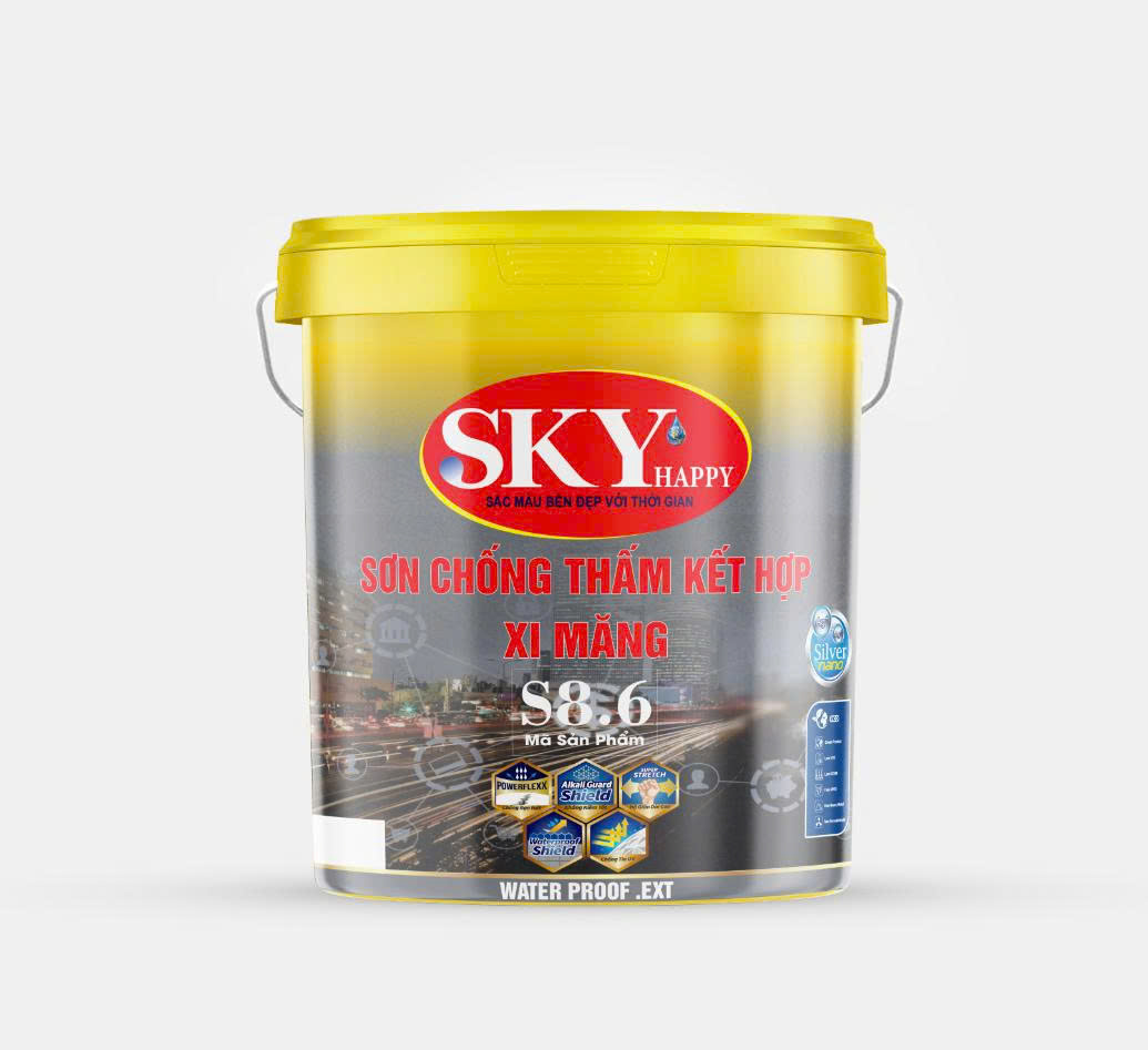Sơn chống thấm kết hợp xi măng Sky Happy sử dụng công thức tối ưu chống thấm xi măng, bền màu và an toàn, giúp bề mặt đạt thẩm mỹ cao và tuổi thọ sử dụng dài lâu.