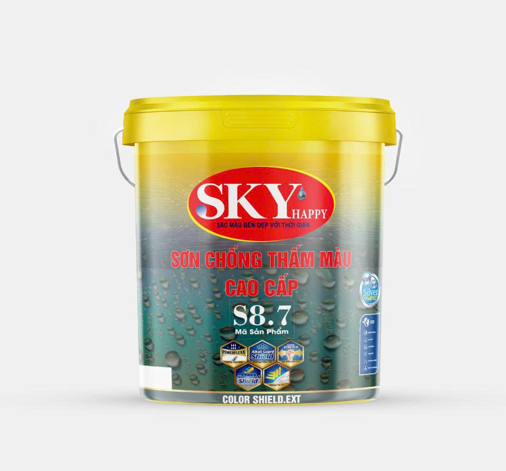 Sơn chống thấm màu cao cấp Sky Happy tập trung vào sơn chống thấm màu và hiệu quả thi công ổn định. Công thức cải tiến Sky Happy cho khả năng che phủ tốt, độ bám dính bền vững và lớp hoàn thiện mịn đẹp đồng đều.