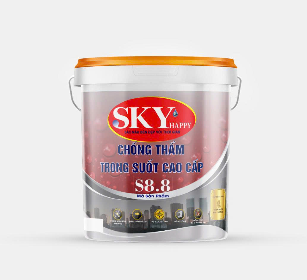 Sơn chống thấm trong suốt cao cấp Sky Happy sử dụng công thức tối ưu sơn chống thấm trong suốt, bền màu và an toàn, giúp bề mặt đạt thẩm mỹ cao và tuổi thọ sử dụng dài lâu.