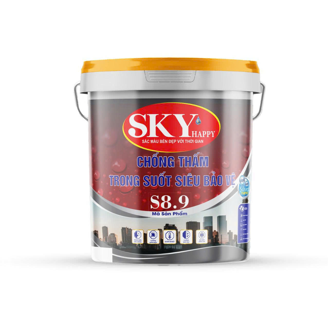 Sơn chống thấm trong suốt siêu bảo vệ Sky Happy tập trung vào sơn chống thấm siêu bảo vệ và hiệu quả thi công ổn định. Công thức cải tiến Sky Happy cho khả năng che phủ tốt, độ bám dính bền vững và lớp hoàn thiện mịn đẹp đồng đều.
